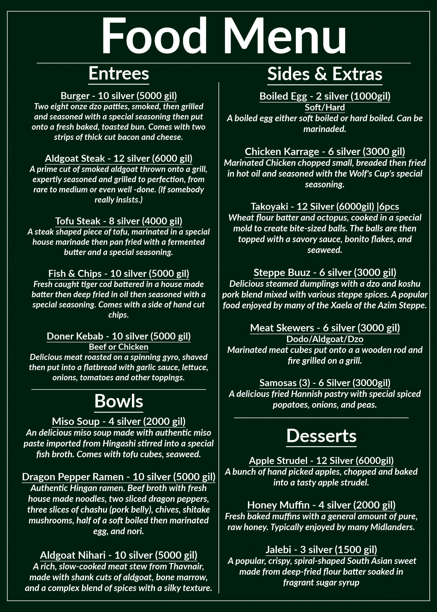 The Hannish Special - 1 Platimum, 10 silver (15,000 gil)